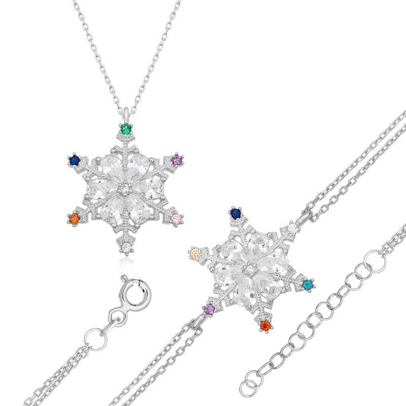 Gümüş Renkli Taşlı Kar Tanesi Kadın Set Her kar tanesinden aslında sadece bir tane var. Sevdiğiniz kişiye hediye ettiğiniz kar...
