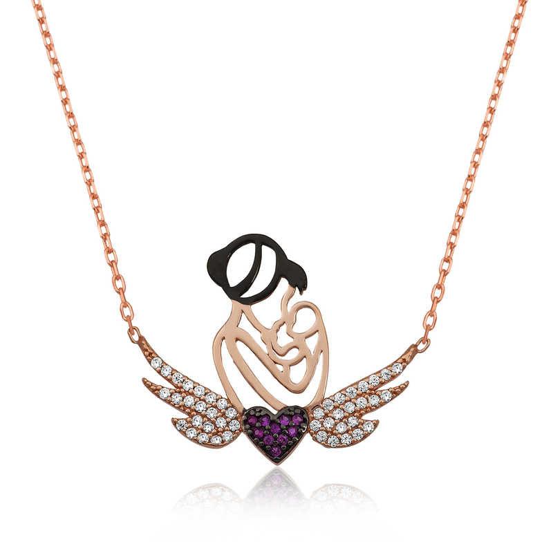 Anne ve çocuğu arasında kan bağı ve en önemlisi o büyük aşkı sizler için tasarladık. Bu duygusal kolye; doğum günü hediyesi, sevgililer günü hediyesi veya anneler gününde hediye olarak özel günlerde tercih edilebilecek mükemmel bir seçenektir. Bu şık tasarım 925 ayar gümüşten imal edilmiştir. Bu kolye üzerinde rose kaplama yapılmıştır. Rose kaplama yapılan kolyeler parlaklığını uzun süre muhafaza eder, gümüş rengini pembe renge çevirir ve oksitlenmeyi geciktirir. Üzerinde bulunan taşlar zirkondur. Tüm gümüş bayan kolyelerde olduğu gibi gümüş kalpli anne ve çocuk kolye de el emeği ile üretilmiştir. Gümüş ve değerli taşlar nedeniyle belirtilen ürün ağırlığında ± %10 sapma olabilmektedir.