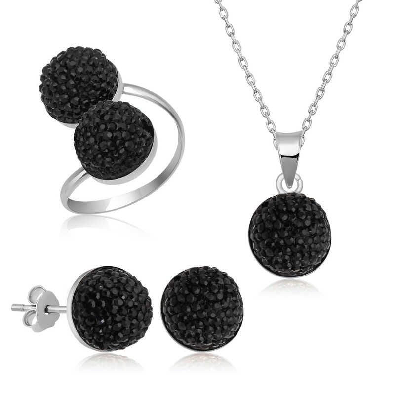 Gümüş Siyah Kristal Bayan Ayarlanabilir Set
