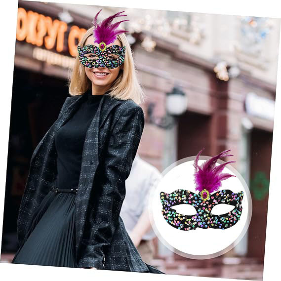 Karnavalda, baloda veya maskeli baloda göz kamaştırmak mı istiyorsunuz? Siyah Kadife Üzeri Rengarenk Payetli Pullu Pembe Tüylü Pembe Taşlı Parti Maskesi ile gecenin yıldızı siz olun!