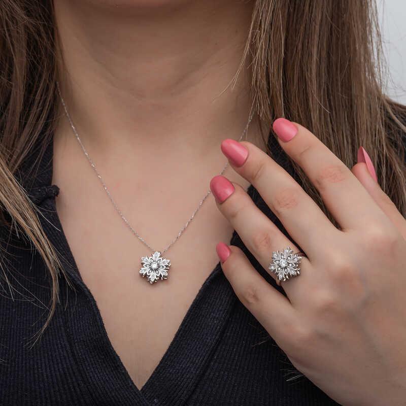 The sparkle and clarity of women are specially designed to resemble snowflakes. Another feature that makes them special is that each snowflake is unique and has a separate value like women. Its nobility has managed to attract attention in every period. In addition, it symbolizes that people can live happily without harming each other just like snowflakes. This stylish set is a perfect option that can be preferred on special occasions as a birthday gift, Valentine's Day gift or a gift for mothers. The set is made of 925 sterling silver. Rhodium plating is applied on silver. Silver women's set models with rhodium plating preserve their shine for a long time and oxidation is delayed. As with all silver women's set models, this silver adjustable snowflake rotating stress women's set is also entirely handmade. There may be a ± 10% deviation in the specified average product weight due to silver and precious stones.