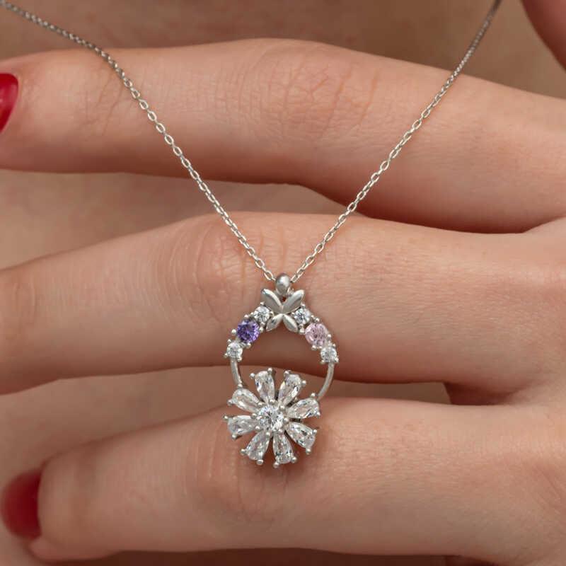 Why shouldn't an elegant necklace with a flower pattern be the way to express your feelings to your loved ones? This stylish necklace, which is among the gift options that you can send to her on special occasions, is among the most beautiful ways to make your loved ones happy. The silver white flower women's necklace, prepared with the highest quality, brightest, and most sparkling stones, is waiting for those who want to express their love once again, those who want to say you are a flower. This specially designed silver white flower women's necklace is made of 925 sterling silver. Rhodium plating is applied on silver. Silver women's necklace models with rhodium plating preserve their shine for a long time and oxidation is delayed. The average silver chain length is 45 cm. As with all women's silver necklace models, the silver white flower women's necklace is also produced by hand. There may be a ± 10% deviation in the specified product weight due to silver and precious stones.