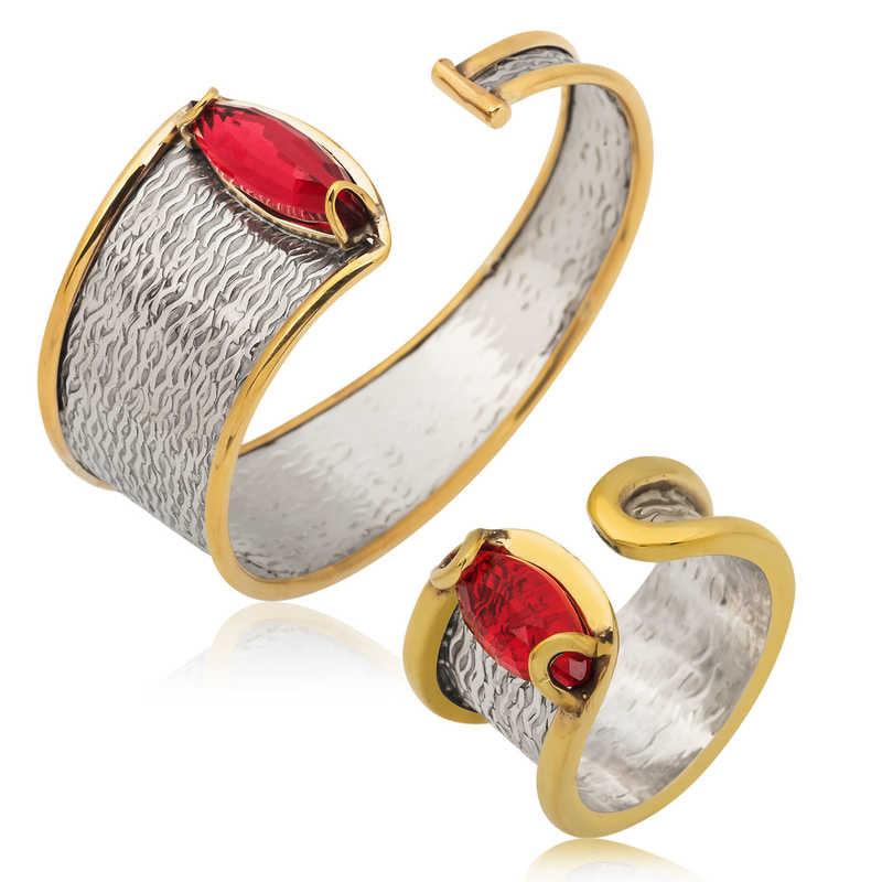 Dazzle with the sparkle of silver and red zircon stone. Today's fashion is being reinterpreted in different styles for modern women who cannot contain themselves. Elegant and charming touches to your beauty with the dazzling sparkle of the shuttle stone... This duo set, which you and your loved ones will enjoy wearing, will also be one of the most beautiful gifts with which you can share your love. Made of 925 sterling silver. There may be a ± 10% deviation in the average product weight due to silver and precious stones.