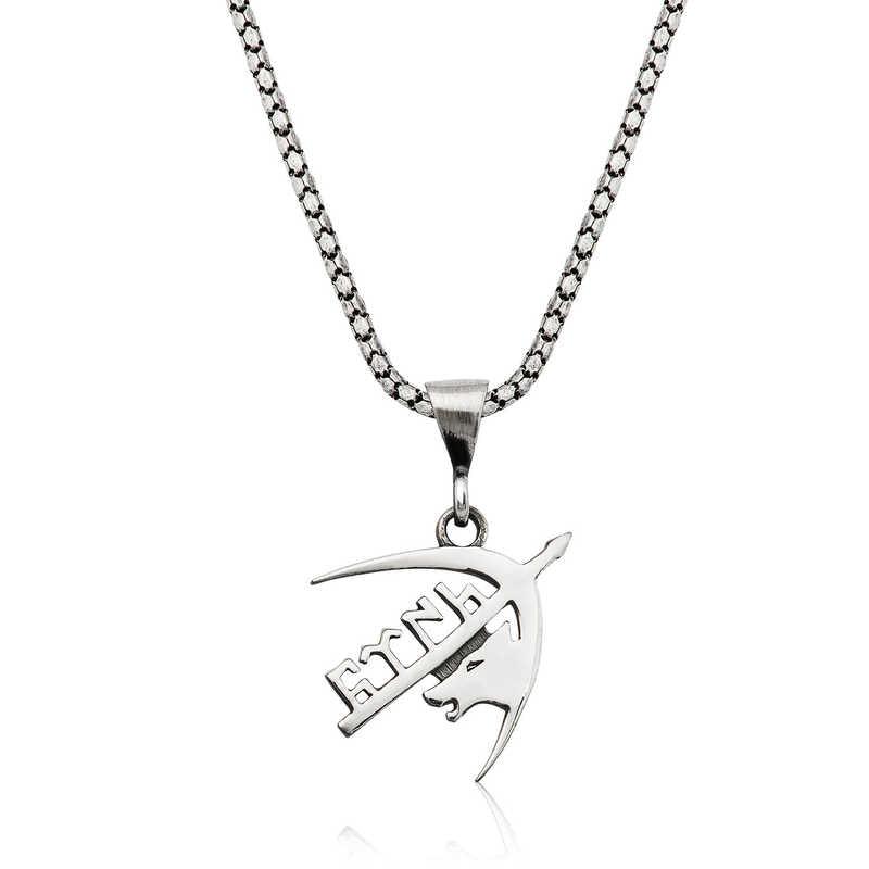 Silver Grey Wolf Arrow and Gokturkish Turkish Written Necklace