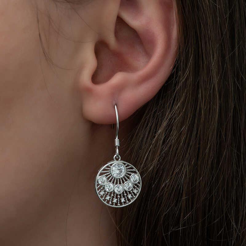 The ethnic patterned women's earring decorated with white zircon stones is designed for those who love sparkle and elegance. It is a product that you can use at any time of the day, that will attract everyone's attention and dazzle. Silver ethnic patterned women's earring is made of 925 sterling silver. This earring is rhodium plated. Rhodium plated products maintain their shine for a long time. The stones on it are zircon. As with all silver women's earring models, the silver ethnic patterned women's earring model is also produced by hand. There may be a ± 10% deviation in the specified average product weight due to silver and precious stones. All of our products are produced by hand.