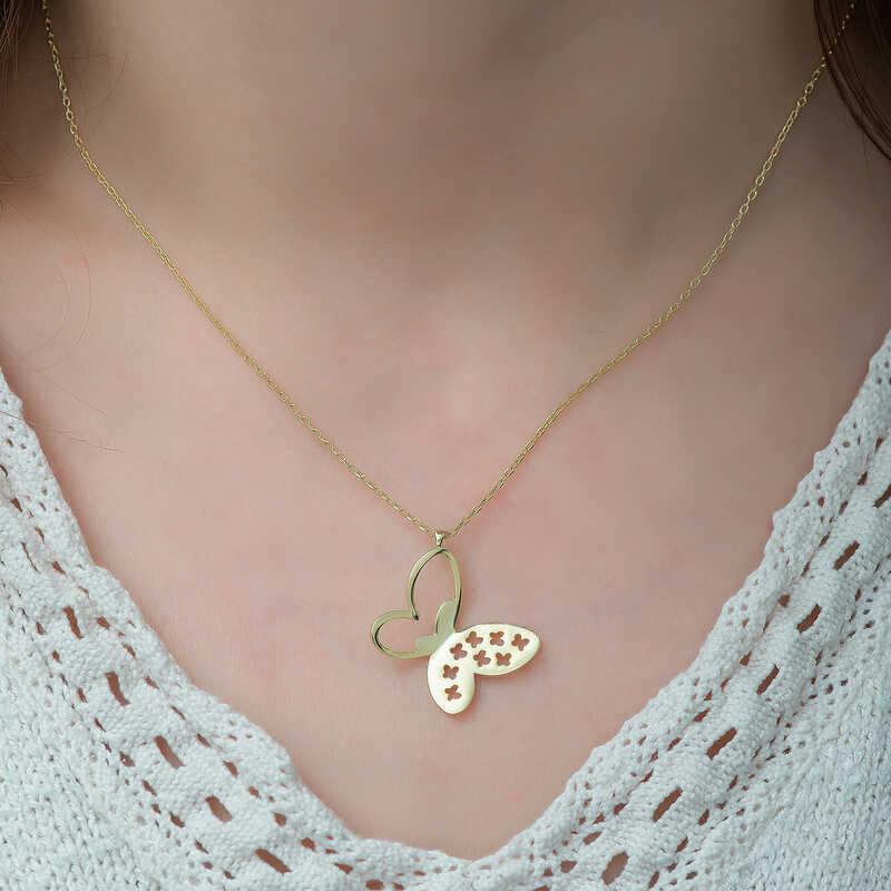 Butterfly; is one of the most popular motifs preferred by women. It reminds its lovers of the mystery of nature and the richness of human imagination. Butterflies, which symbolize freedom, innocence and purity, are the expression of pure love and passion. The butterfly women's necklace, which you and your loved ones will enjoy wearing, will be one of the best gifts for your loved ones. The necklace is made of 925 sterling silver. Gold plating is applied on silver. Silver women's necklaces with gold plating preserve their shine for a long time and delay oxidation. The average silver chain length is 45 cm. As with all silver women's necklaces, the silver gold butterfly women's necklace model is also produced by hand. There may be a ± 10% deviation in the average product weight due to silver and precious stones.