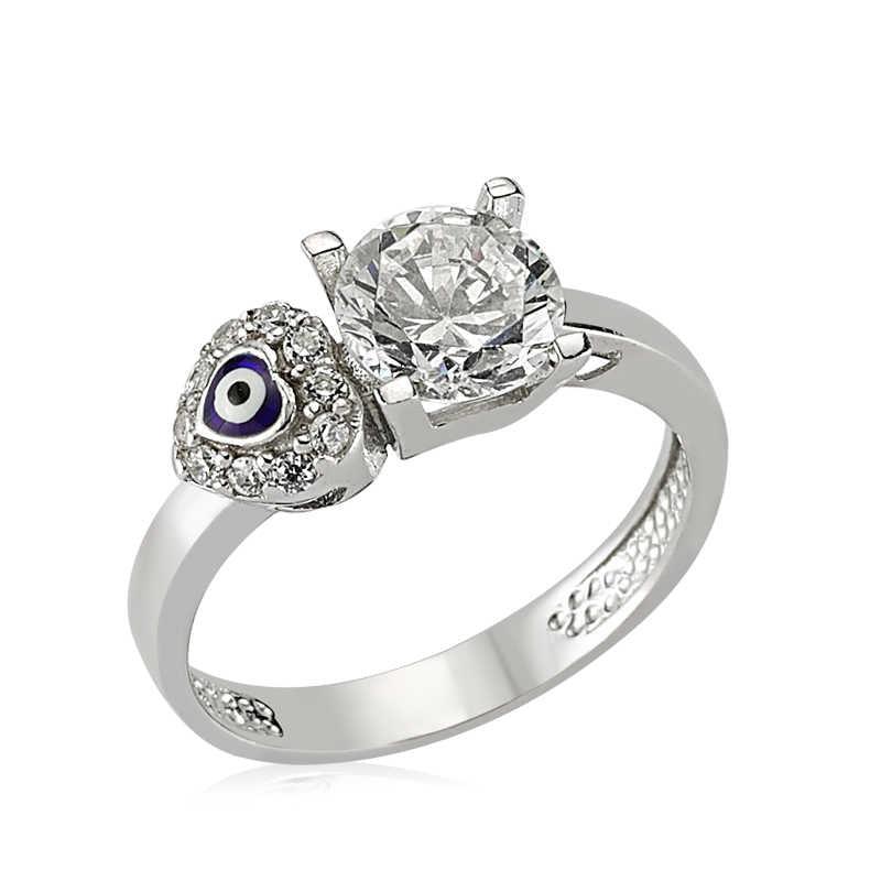 Silver Heart Evil Eye Single Stone Women's Ring