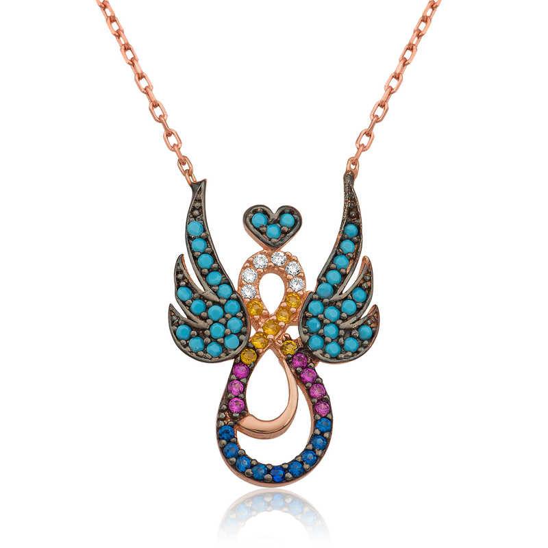 One of the most beautiful ways to tell your loved one about your love that will last forever is the infinity symbol. The winged infinity symbol can be one of the meaningful gifts that can be received on special occasions such as wedding anniversaries or Valentine's Day as a sign of eternal love and loyalty. This stylish necklace model is made of 925 sterling silver. Rose gold plating is applied on silver. Silver necklace models with rose gold plating preserve their shine for a long time. The chain length is 45 m. As with all of our products, the Silver Winged Infinite Love Necklace model is also handmade. There may be a ± 10% deviation in the specified average product weight due to silver and precious stones.