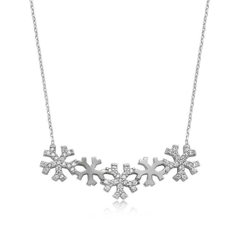Each different snowflake is sure to be one of the most meaningful gifts that can be given to a unique lover. You can gift this specially designed silver snowflake women's necklace model, made of 925 sterling silver, to people you want to protect from the evil eye and to your loved ones. The white stones on the silver snowflake women's necklace are zircon. There is rhodium plating on the necklace. Silver necklace models with rhodium plating preserve their shine for a long time. The average silver chain length is 45 cm. As with all our silver necklace models, the silver snowflake women's necklace model is also produced by hand. There may be a ± 10% deviation in the specified product weight due to silver and precious stones.