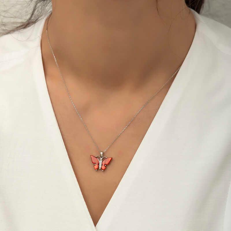 Tiger's eye, a quartz group stone, is one of the most valuable healing stones. It gains a silky appearance when polished. Tiger's eye stone is a stone with iridescent properties. It is generally used as jewelry. Tiger's eye stone is known to be good for asthma diseases. At the same time, it acts by activating in case of nervous system disorders and shows its relaxing effect. It is a great balancer in emotional terms. Butterfly; is one of the most popular motifs preferred by women. It reminds its lovers of the mystery of nature and the richness of human imagination. Butterflies, which symbolize freedom, innocence and purity, are the expression of pure love and passion. The Red Tiger's eye Stone butterfly women's necklace, which you and your loved ones will enjoy wearing, will be one of the best gifts for your loved one. The necklace is made of 925 sterling silver. Rhodium plating is applied on silver. Silver women's necklaces with rhodium plating preserve their shine for a long time and delay oxidation. The silver chain length is 45 cm on average. As with all silver women's necklaces, the silver Red Tiger's eye Stone butterfly women's necklace model is also produced by hand. Due to silver and precious stones, there may be a ± 10% deviation in the stated average product weight.