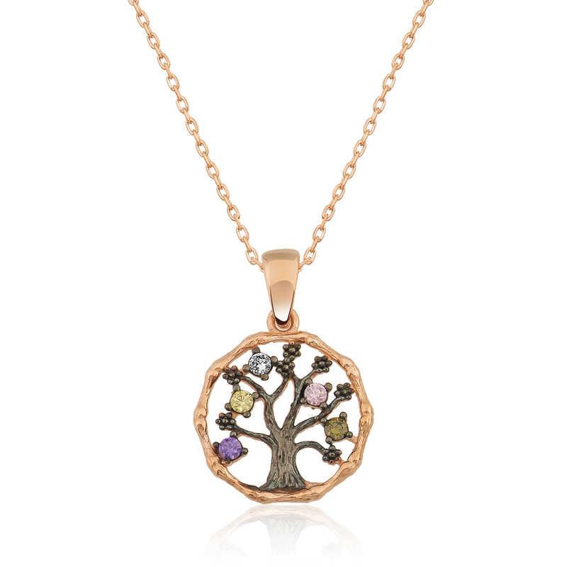 The tree of life symbolizes a new life. In addition, it means leaving a mark on the world, continuing the lineage, that is, the symbol of the family. This stylish necklace is made of 925 sterling silver. Rose gold plating is made on silver. Rose gold plating preserves its shine for a long time, turns silver into a pink color and delays oxidation. The stones on it are zircon. The length of the silver chain is 45 cm on average. As with all silver women's necklaces, the silver small tree of life women's necklace is also handmade. There may be a ± 10% deviation in the specified product weight due to silver and precious stones.