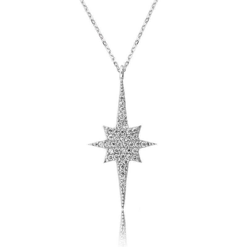 The pole star is an indispensable symbol for people who direct, influence and want to put their lives in order. You can choose this stylish design as a birthday gift, Valentine's Day gift or a gift for mothers on special days. The necklace is made of 925 sterling silver. Rhodium plating is applied to silver. Rhodium-plated products preserve their shine for a long time and delay oxidation. The stones on it are zircon. As with all silver women's necklace models, the silver pole star women's necklace is also handmade. There may be a ± 10% deviation in the specified average product weight due to silver and precious stones.