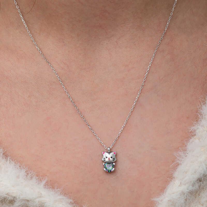 Cats are known for their independence. For this reason, cat necklaces symbolize free spirits and emphasize the self-confidence of the wearer. Cats, the cute source of joy in our homes, are the symbol of innocence as well as being clean. They have a noble and logical personality, excellent intuition and rational sensitivity. This stylish necklace is a perfect option to be preferred as a birthday gift, Valentine's Day or special occasions. The necklace is made of 925 sterling silver. Rhodium plating is applied on the silver. There may be a ± 10% deviation in the average product weight due to silver and precious stones.
