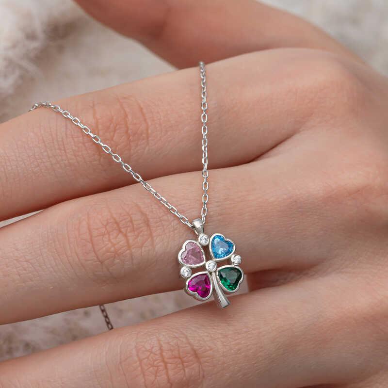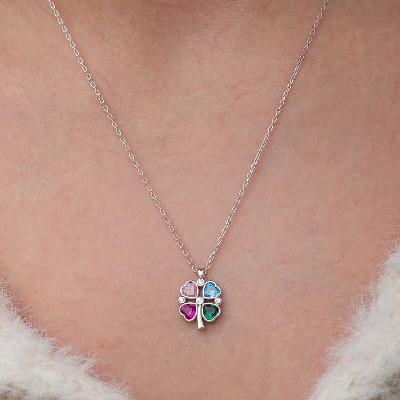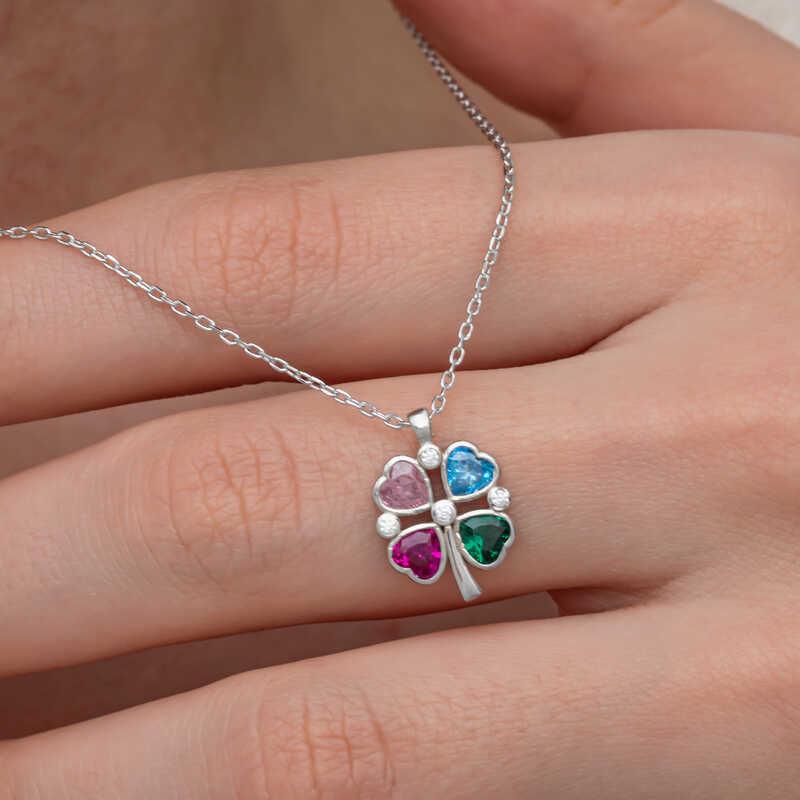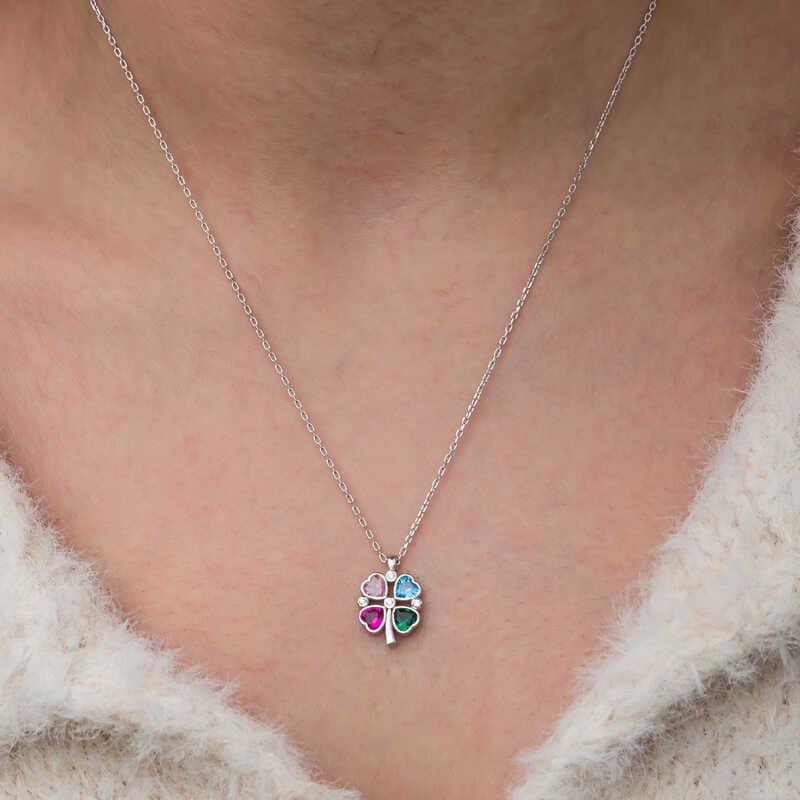 While the heart is a symbol of love and commitment; the clover (especially four-leaf) represents luck. Therefore, this necklace has a special meaning for those who want to attract both love and luck. This stylish necklace is a perfect option for a birthday gift, Valentine's Day or special occasions. The necklace is made of 925 sterling silver. Rhodium plating is applied on the silver. There may be a ± 10% deviation in the average product weight due to silver and precious stones.