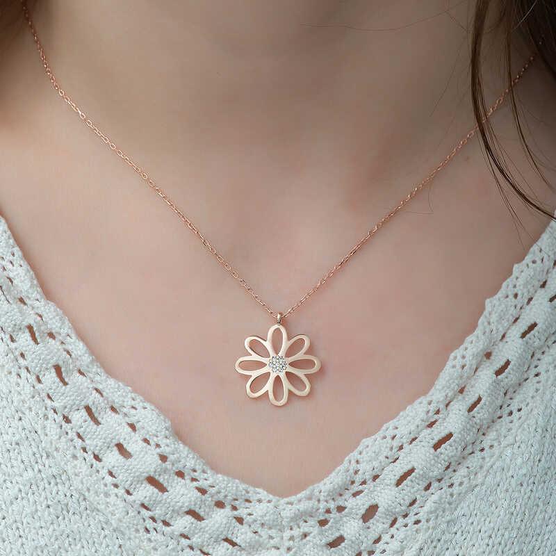 Why shouldn't an elegant necklace with a flower pattern be the way to express your feelings to your loved ones? This stylish necklace, which is among the gift options that you can send to her on special occasions, is among the most beautiful ways to make your loved ones happy. Silver flower women's necklace prepared with the highest quality, most sparkling stones; It awaits those who want to express their love once again, those who want to say you are a flower. This specially designed silver flower women's necklace is made of 925 sterling silver. Rose gold plating is made on silver. Silver women's necklace models with rose gold plating preserve their shine for a long time and oxidation is delayed. The average silver chain length is 45 cm. As with all women's silver necklace models, the silver rose flower women's necklace is also produced by hand. There may be a ± 10% deviation in the specified product weight due to silver and precious stones.