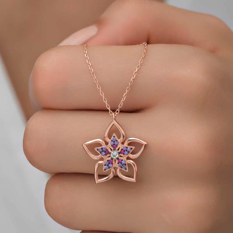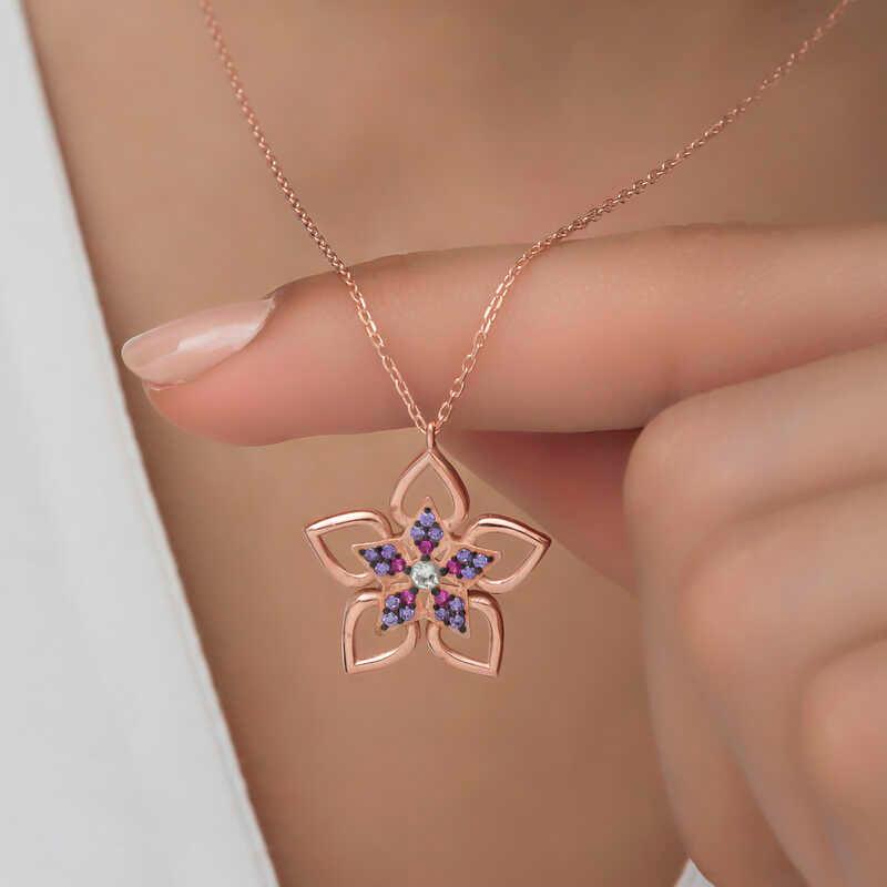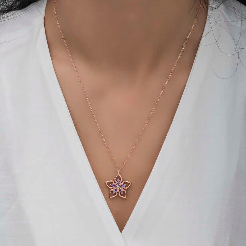The most special and elegant way to express your feelings to your loved ones is to send them stylish, colorful and fragrant flowers. Among the gifts to be given on special occasions, flowers have been designed with a different interpretation this time... Flower necklace awaits those who want to express their love once again, those who want to say you are a flower. This special design, flower women's necklace is made of 925 sterling silver. Rose coating is applied on silver. Silver women's necklace models with rose coating preserve their shine for a long time and oxidation is delayed. The stones on the necklace are zircon. As in all women's silver necklace models, the silver flower women's necklace is also produced by hand. There may be a ± 10% deviation in the specified product weight due to silver and precious stones.