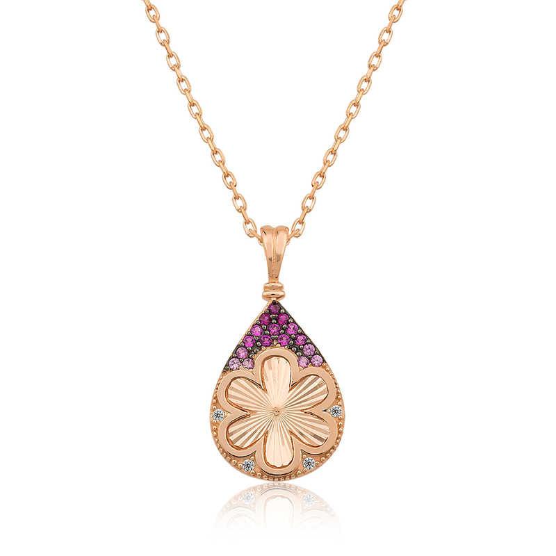 The most special and elegant way to express your feelings to your loved ones is to send them stylish, colorful and fragrant flowers. Among the gifts to be given on special occasions, this time the flower has been designed as a silver necklace... The flower necklace inside the drop is waiting for those who want to express their love once again, those who want to say you are a flower. This specially designed drop flower women's necklace is made of 925 sterling silver. Rose gold plating is made on silver. Silver women's necklace models with rose gold plating preserve their shine for a long time and oxidation is delayed. The stones on the necklace are zircon. As in all women's silver necklace models, the silver drop flower women's necklace is also produced by hand. There may be a ± 10% deviation in the specified product weight due to silver and precious stones.