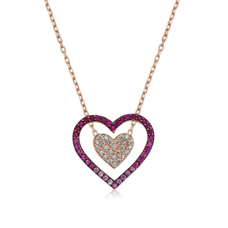 The heart symbol has always been a symbol of unconditional love and affection. In religious teachings, the power of the heart is limitless. Because the heart is the home of the Creator and our reality door to the universe. Two heart necklaces will represent you and your lover. This stylish two heart necklace is a perfect option to be preferred on special occasions as a birthday gift, Valentine's Day gift or a gift for mothers. Silver two heart women's necklace is made of 925 sterling silver. Rose coating is applied on this necklace. Silver women's necklace models with rose coating preserve their shine for a long time and turn the silver color into pink. The sparkling stones on it are zircon. As with all our silver women's necklace models, the silver two heart women's necklace model is also produced by hand. There may be a ± 10% deviation in the specified average product weight due to silver and precious stones.