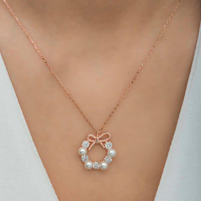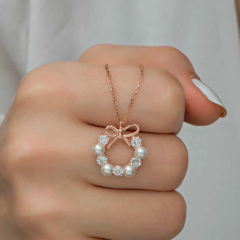 Appealing to all women who want to achieve an elegant look, the silver pearl stone necklace that will never go out of fashion is waiting for you. How about spreading sparkle around you with the eye-catching sparkle of rose plated silver, pearl and zircon stone... The pearl necklace that your loved ones will enjoy wearing as much as you will be one of the most beautiful gifts with which you can share your love... Made of 925 sterling silver. Rose plated on silver. Rose plated products preserve their shine for a long time and their oxidation is delayed. The white stones on them are zircon and the pearl is cultured pearl. All of our products are handmade. There may be ± 10% deviation in product weight due to silver and precious stones.