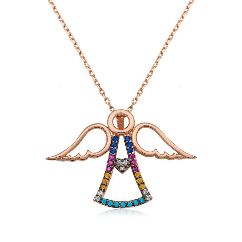 This lady angel necklace model designed with a heart angel motif is made of 925 sterling silver. The stones on the silver are zircon. Rose gold plating is made on the silver angel lady necklace. All silver lady necklace models with rose gold plating preserve their shine for a long time and oxidation is delayed. It is sent with a silver chain that is 45 cm long. As with all silver lady necklace models, the silver heart angel lady necklace model is also produced entirely by hand. There may be a ± 10% deviation in the specified average product weight due to silver and precious stones.