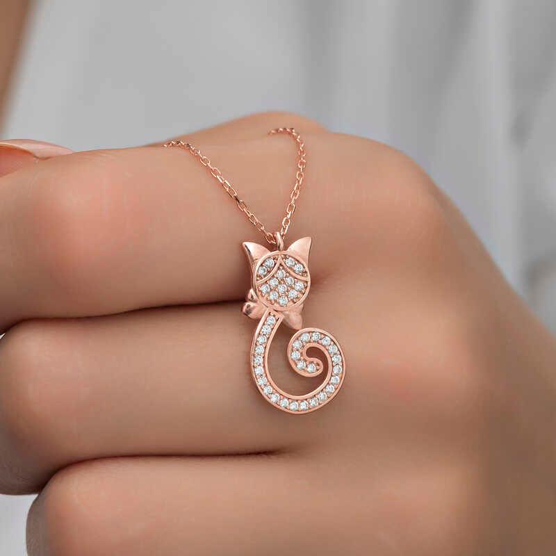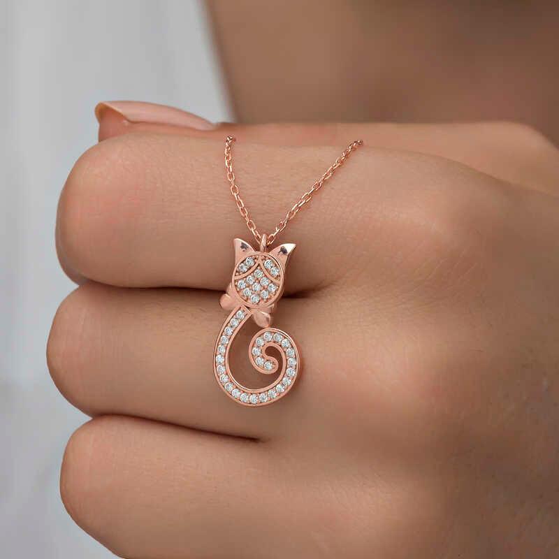Cats, the cute source of joy in our homes, are the symbol of innocence as well as being clean. They have a noble and logical personality, perfect intuition and rational sensitivity. Silver jewelry, which is one of the most preferred gift options for special occasions, is designed for those who want to make their loved ones happy and give them a gift that they can carry with them at all times. You can gift the cat-figured silver necklace model, which is the symbol of innocence, to your sister, lover or friends. The zircon stone cat woman necklace model is made of 925 sterling silver. Rose coating is applied on silver. Silver cat necklace models with rose coating preserve their shine for a long time and oxidation is delayed. All stones on the necklace are zircon. The average silver chain length is 45 cm. The silver woman cat necklace is handmade like all other silver woman necklace models. There may be a ± 10% deviation in the specified average product weight due to silver and precious stones.