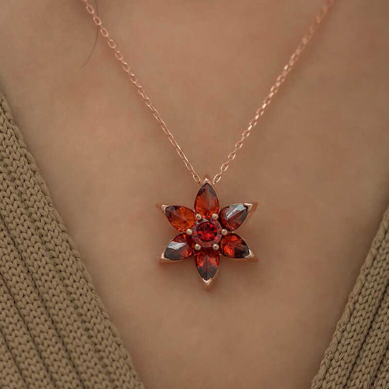 Why shouldn't an elegant necklace with a flower pattern be the way to express your feelings to your loved ones? This stylish necklace, which is among the gift options that you can send to her on special occasions, is among the most beautiful ways to make your loved ones happy. Silver red flower women's necklace prepared with the highest quality, most sparkling stones; is waiting for those who want to express their love once again, those who want to say you are a flower. This specially designed silver red flower women's necklace is made of 925 sterling silver. Rose coating is applied on silver. Silver women's necklace models with rose coating preserve their shine for a long time and oxidation is delayed. The average silver chain length is 45 cm. As with all women's silver necklace models, the silver red flower necklace is also produced by hand. There may be a ± 10% deviation in the specified product weight due to silver and precious stones.