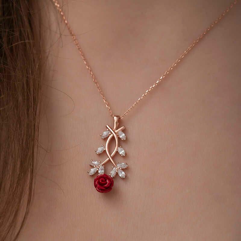 As the weather warms, nature comes to life and heralds the arrival of spring. Trees covered in green, colorful flowers bloom and welcome us with their unique scents. This necklace, inspired by nature, symbolizes rebirth and spring. This stylish necklace is a perfect option for a birthday gift, Valentine's Day or special occasions. The necklace is made of 925 sterling silver. Rose plating is applied to silver. Rose plating gives the silver a pink copper color. As with other necklaces, the silver red rose necklace is also handmade. There may be a ± 10% deviation in the average product weight due to silver and precious stones.