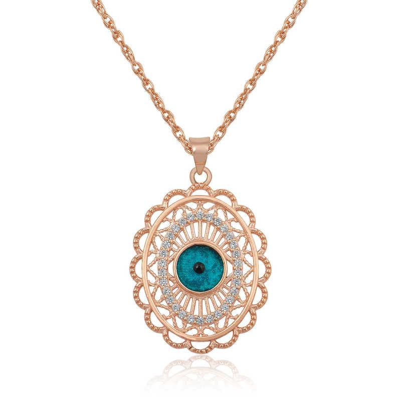 Silver Rose Oval Evil Eye Women's Necklace The oval evil eye silver necklace, which will accompany you at every moment...