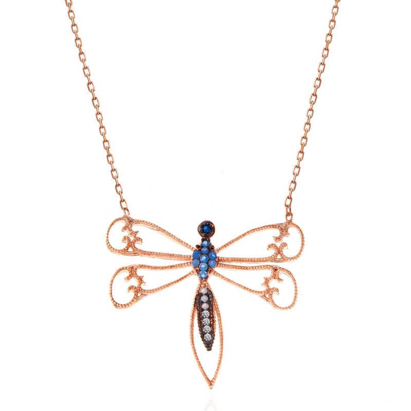 The dragonfly is a symbol of devotion, loyalty, and monogamy... Despite death, the dragonfly never gives up on its love... By nature, after the male dragonfly and the female dragonfly mate, the male dragonfly dies. Even though it knows that death will eventually occur, the male dragonfly mates with a single female throughout its life and never gives up on it... The necklace was designed with inspiration from this beauty that smells of sadness and loyalty... This elegant necklace is a terrific necklace that can be preferred as a birthday gift, Valentine's Day gift or on special occasions. This stylish design is made of 925 sterling silver. Rose plating is applied to silver. Necklaces with rose plating preserve their shine for a long time and turn their silver color into pink. The stones on the necklace are zircon. As with all women's silver necklaces, the silver dragonfly women's necklace is also handmade. There may be a ± 10% deviation in the specified product weight due to silver and precious stones.