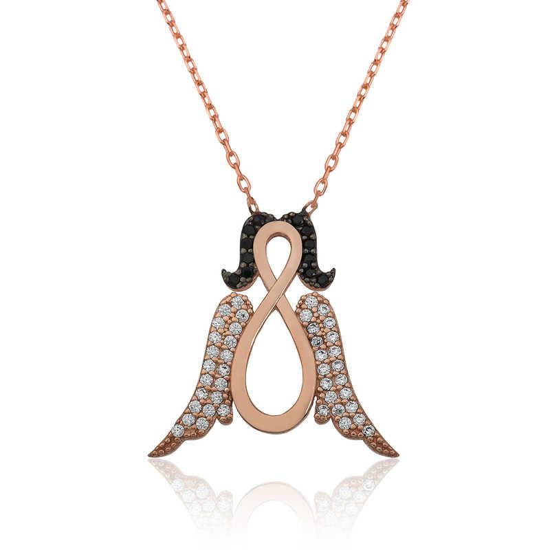 Angels, which symbolize sinless beings in all religions, are loyal servants in the service of God. Believing in angels is among the conditions of faith, regardless of religion. It is known that angels have various duties and there are many angels assigned to protect people. You can also wish for the protection of your loved ones with an infinite angel necklace. Angel necklaces have a very big difference in meaning depending on who they are given to. Angel-figured accessories symbolizing purity and innocence are one of the best gift options that can be bought for your loved ones. Delight your loved ones in your life who you value and want to make happy with a gift worthy of angels. Silver infinite angel necklace model is made of 925 sterling silver. Rose gold plating is made on silver. Silver women's necklace models with rose gold plating preserve their shine for a long time and oxidation is delayed. The stones on the necklace are zircon. The average length of the silver necklace is 45 cm. As with all women's necklace models, the silver infinite angel necklace model is also produced by hand. There may be a ± 10% deviation in the specified average product weight due to silver and precious stones.
