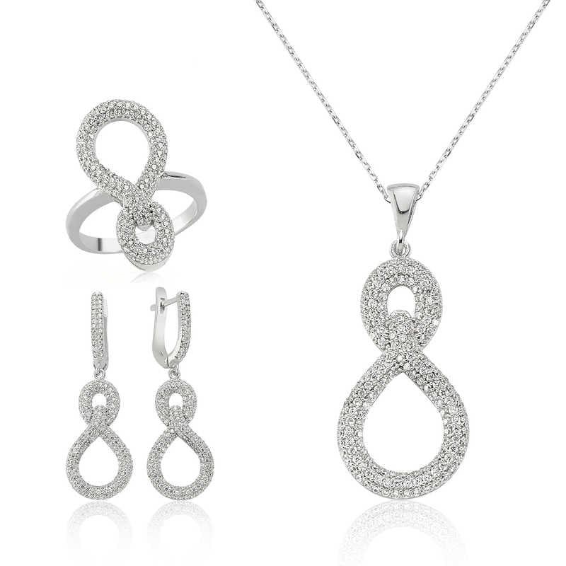 How about shining brightly around you with the dazzling sparkle of silver and zircon... The timeless infinity set, which appeals to all women who want to achieve an elegant look, is waiting for you. The silver infinity set, which you can use fondly or declare your eternal love to someone who has an important place in your life, is a meaningful gift option. Made of 925 sterling silver. Rhodium plating is applied on silver. Rhodium-plated products preserve their shine for a long time and their oxidation is delayed. The stones on them are zircon. The chain length is 45 cm on average. All of our products are handmade. There may be ± 10% deviation in product weight due to silver and precious stones.