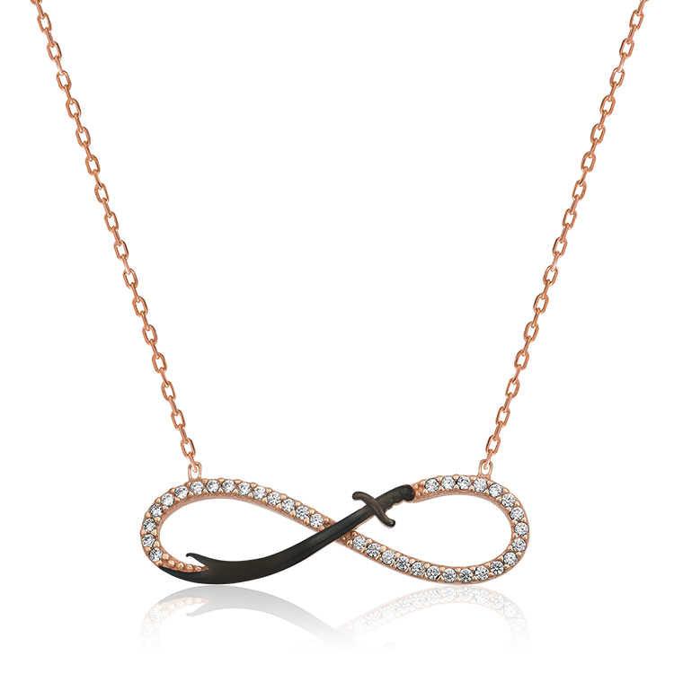 One of the most beautiful and meaningful ways to express eternal love to your lover is to gift him/her infinity-themed silver jewelry. With this special necklace model that you will gift to your lover, you can express your eternal love and affection for him/her and give the message that you will be together forever. Infinity Zulfikar women's necklace model is made of 925 sterling silver. Rose gold plating is made on silver. Silver women's necklace models with rose gold plating preserve their shine for a long time and oxidation is delayed. The white stones on the necklace are zircon. The average length of the silver chain is 45 cm. As with all silver women's necklace models, the silver infinity Zulfikar sword women's necklace model is also produced by hand. There may be ± 10% deviation in the specified product weight due to silver and precious stones.