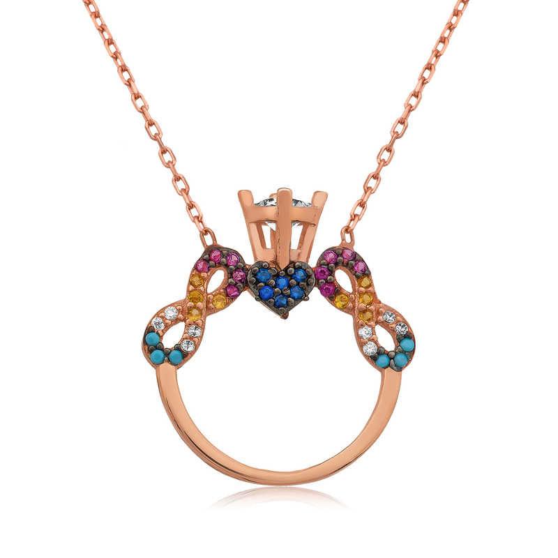 The solitaire ring, which is considered one of the most beautiful ways to express love, is prepared for those who want to express their love with the magic light of a solitaire. How about making a pleasant surprise to your loved one with the symbolic solitaire and the necklace with infinity and heart figures inside. The product will be sent in a gift box... All of our products are handmade and there may be ± 10% deviation in product weight due to precious stones.