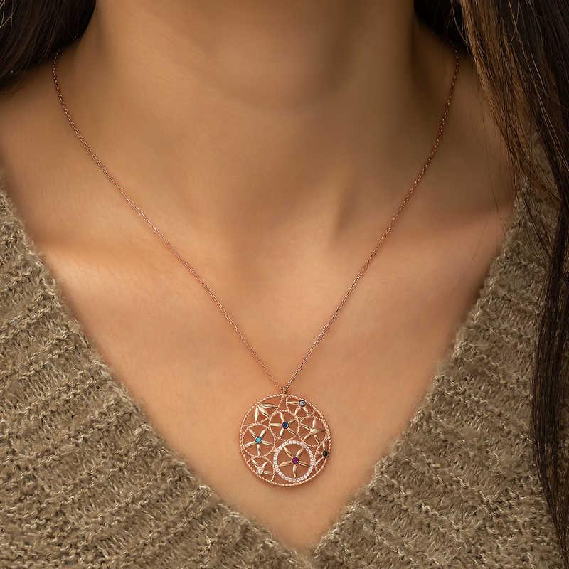 The flower of life is a geometric shape consisting of many intertwined circles of equal area and a large circle outside. The center of each circle is where the circles of the surrounding circles intersect. Drunvalo Melchizedek claims that this symbol contains the secrets of the universe and life. It is a nice accessory that you can enjoy using at any time of the day. Silver flower of life women's necklace is made of 925 sterling silver. This necklace is coated with rose. Rose coated products preserve their shine for a long time and turn silver into copper color. As with all silver women's necklace models, the silver flower of life women's necklace model is also produced by hand. There may be a ± 10% deviation in the specified average product weight due to silver and precious stones. All of our products are produced by hand.