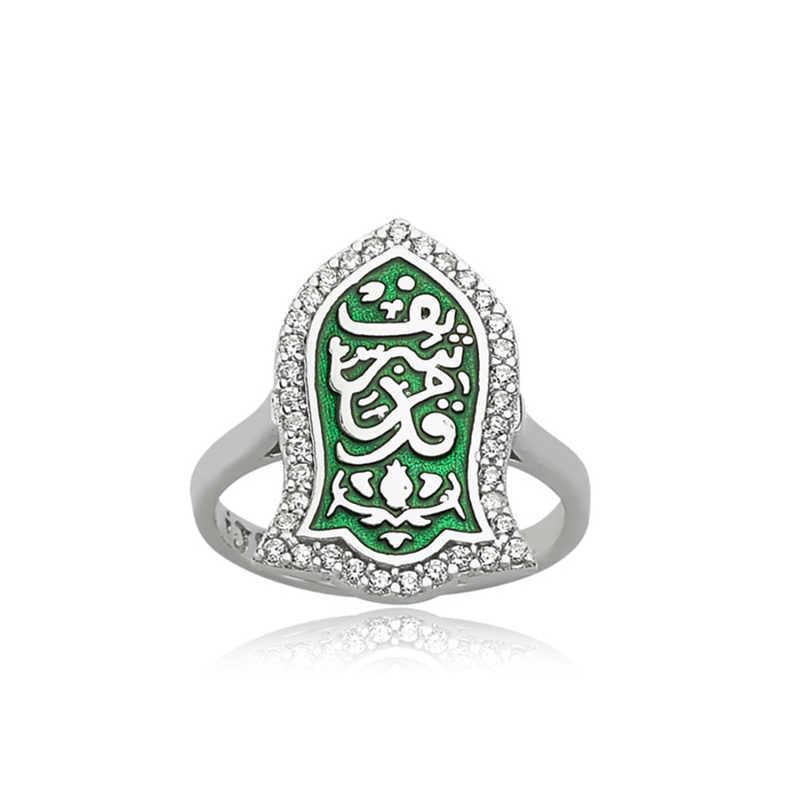 Kademi Serif is another name for the horseshoe. Kademi Serif is the sandal in the shape of a clog worn by our Prophet Muhammad (pbuh). Today, Kademi Serif has become one of the symbols of our Prophet (pbuh). The ring is made of 925 sterling silver. Rhodium plating is applied to the silver. Silver women's ring models with rhodium plating preserve their shine for a long time. The stones on the ring are zircon. The green color is given by the cold enamel method. All of our products are handmade. There may be a ± 10% deviation in the stated average product weight due to silver and precious stones.