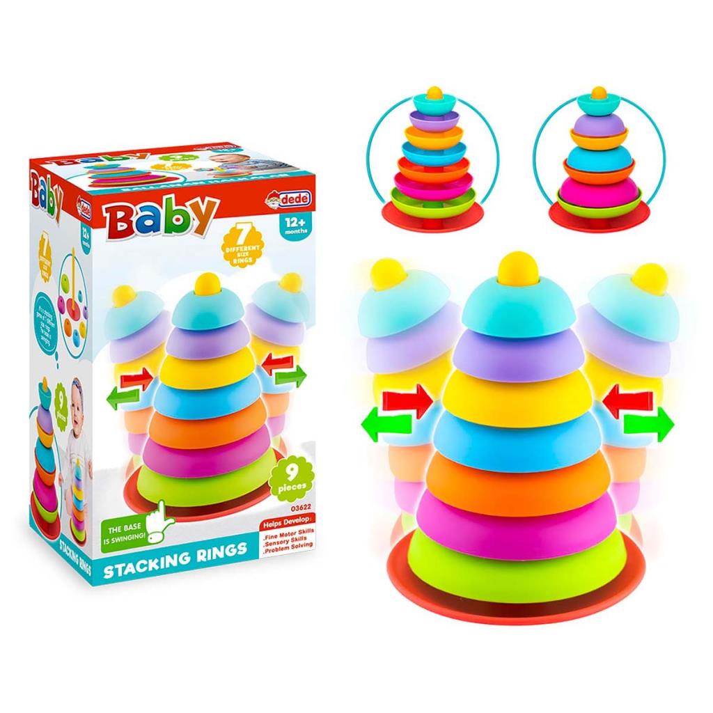 Swinging Rings Swinging Rings Product; It consists of 9 pieces. It is a game of stacking 7 different sized rings...