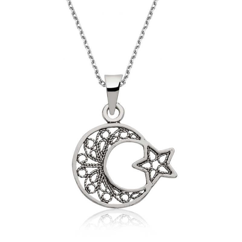 We know that the Turkish flag was inspired by the moon and star reflected in the bloodbath. We offer you an unmissable opportunity to carry the sacred meaning of the flag around your neck and share it with your loved ones. You can gift this stylish necklace to your loved ones on Mother's Day, Valentine's Day, birthdays or special days. This stylish necklace is made of 925 sterling silver. Rhodium plating is applied on silver. All silver women's necklaces with rhodium plating preserve their shine for a long time. The necklace has a 45 cm long silver chain. As with all silver women's necklace models, the silver crescent star women's necklace is also handmade. There may be a ± 10% deviation in the average product weight due to silver and precious stones.