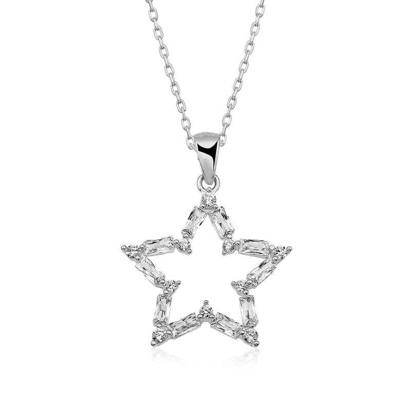 The star is an auspicious symbol believed to bring luck in many societies and teachings. It carries the energy of the Planet Venus. The Planet Venus is also the representative of love and romance. This stylish baguette stone star necklace is a perfect option for a birthday gift, Valentine's Day gift or special occasions. Silver baguette stone star women's necklace is made of 925 sterling silver. This necklace has rhodium plating. Silver women's necklace models with rhodium plating maintain their shine for a long time. As with all our silver women's necklace models, the silver baguette stone star women's necklace model is also produced by hand. There may be a ± 10% deviation in the specified average product weight due to silver and precious stones.