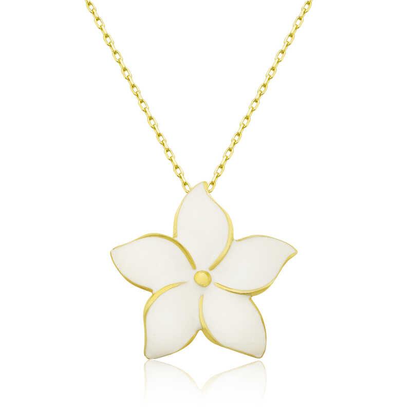 Jasmine flower expresses charm and beauty. It reflects these features with all its simplicity and elegance. You can also make your loved ones or yourself happy with this special necklace. It is a perfect gift option that you can give to your loved ones on birthdays, Valentine's Day and special days. This perfect necklace design is made of 925 sterling silver. Gold plating is applied on silver. All silver women's necklace models with gold plating preserve their shine for a long time and oxidation is delayed. The stones on the necklace are zircon. The silver chain length is an average of 45 cm. All of our products are handmade. There may be a ± 10% deviation in the specified average product weight due to silver and precious stones.