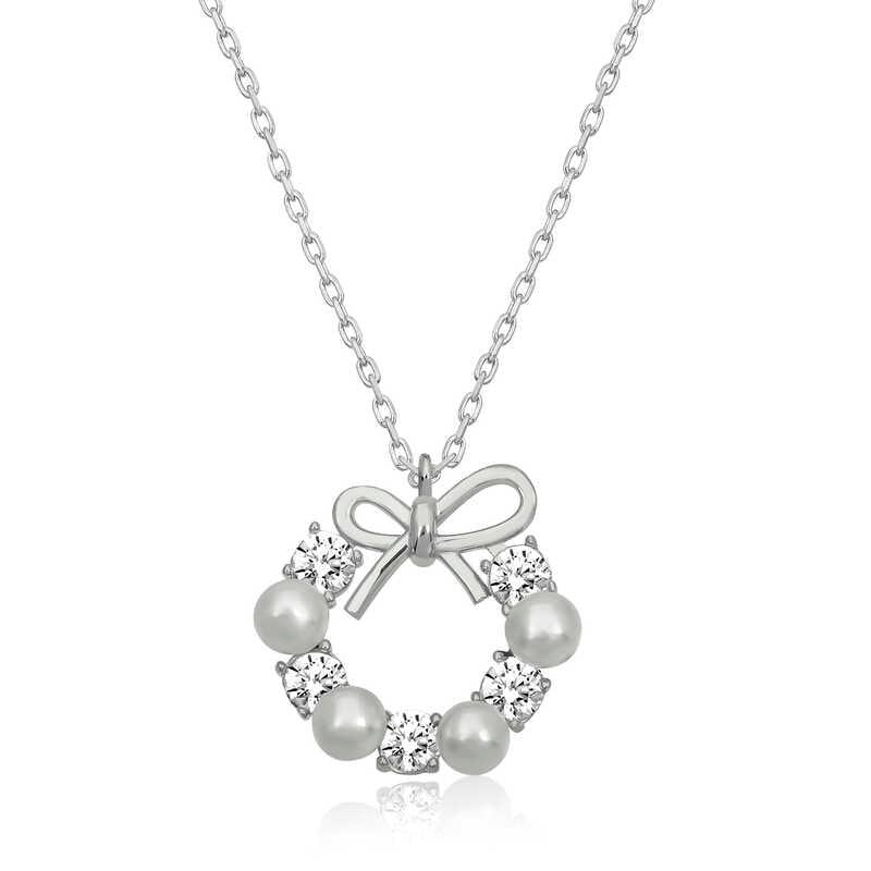 Silver Pearl Ribbon Women's Necklace Appealing to all women who want to achieve an elegant look, the silver pearl stone...