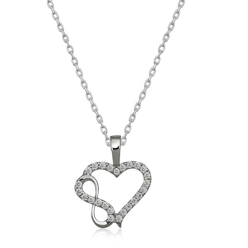 One of the most beautiful and meaningful ways to express your eternal love to your lover is the infinity necklace. With this special necklace that you will give to your lover and yourself, you can express your eternal love and affection for him/her and give the message that you will be together forever. This wonderful necklace design is made of 925 sterling silver. Rhodium plating is applied on silver. Silver necklace models with rhodium plating preserve their shine for a long time. The silver chain length of the necklace is 45 cm. This rhodium plated silver heart infinity necklace is produced with labor. There may be ± 10% deviation in the average product weight specified due to silver and precious stones.