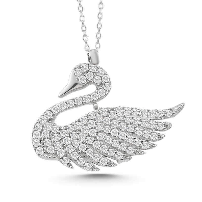 Swan; It represents lovers with its most noble, clear and elegant stance... This stylish and eye-catching necklace; It is a perfect option to be preferred on special days as a birthday gift, Valentine's Day gift or a gift for mothers. The white stones on it are zircon. Swan necklace models are known as the symbol of delicacy and purity. For this reason, it is a stylish gift option. The chain that comes with the necklace is completely silver and is 45 cm long. As with all silver women's necklace models, the silver women's swan necklace model is also completely handmade. For this reason, there may be a ± 10% deviation in the average product weight specified due to metal and precious stones.
