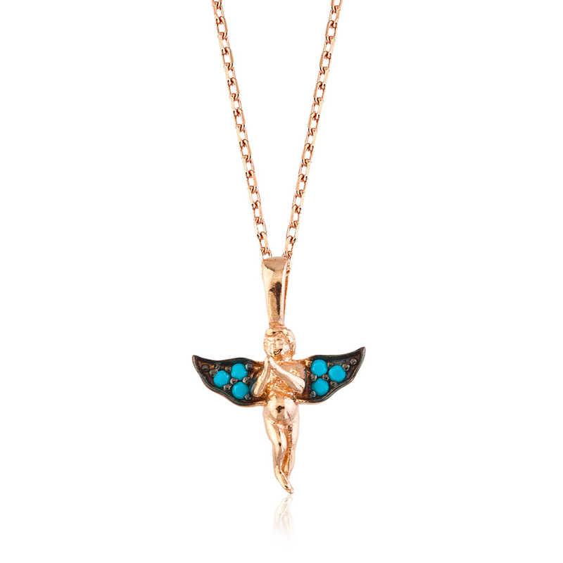 Angels are symbols of purity and cleanliness. For this reason, the person who is given an angel necklace is given the message that he/she is as pure and clean as an angel ... Angel lady necklace; You can make your lover happy by gifting it to them on their birthday, Valentine's Day or special days ... This special angel design is made of 925 sterling silver ... The stones on the designed angel wing lady necklace are turquoise. This lady silver necklace is rose plated. All necklaces with rose plated preserve their shine for a long time, give the silver a pink color, and delay oxidation. The average chain length is 45 cm. As with all silver necklaces, this silver angel lady necklace is also handmade. There may be ± 10% deviation in product weight due to silver and precious stones.