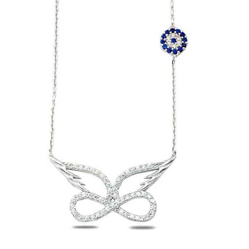 One of the gifts that make your lover the happiest is the infinity symbol necklace models, it expresses your love, passion and loyalty that you wish to last forever. Angel wings stand out as an extremely nice gift option due to their symbols of purity, cleanliness and protective meaning. For this reason, the silver evil-eye angel wing infinity women's necklace expresses that the person who is given the gift is as pure and clean as an angel and will be loved forever. The silver angel wing infinity women's necklace that your loved ones will enjoy wearing as much as you will be one of the most beautiful gifts for your lover. This specially designed necklace is made of 925 sterling silver. There is rhodium plating on the silver. All silver women's necklace models with rhodium plating preserve their shine for a long time. As with all women's necklace models, the silver angel wing infinity women's necklace is also produced by hand. There may be a ± 10% deviation in the specified product weight due to silver and precious stones.