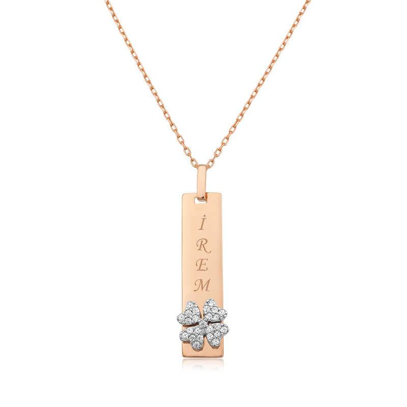 The four-leaf clover is considered a symbol of good luck in all cultures. Each of the four leaves of the clover has a different meaning. The first leaf symbolizes hope, the second faith, the third love, and the fourth leaf luck. Let your love come to life on the skin of the woman you love with the plate women's necklace where you can have the name of your loved one written with the clover pattern expressing love. This stylish necklace is made of 925 sterling silver. The silver plate women's necklace that your loved ones will enjoy wearing as much as you do; It is a perfect option to be preferred on special occasions as a birthday gift, Valentine's Day gift or a gift for mothers. Rose coating is applied on silver. Rose plated women's necklace models preserve their shine for a long time and oxidation is delayed. The stones on it are zircon. As with all silver women's necklaces, the silver plate women's necklace with clover pattern is also produced by hand. There may be a ± 10% deviation in the specified product weight due to silver and precious stones.