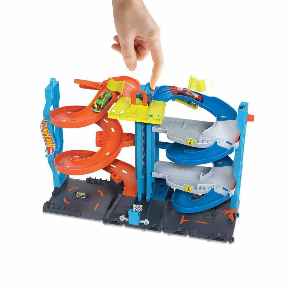 Additional sets sold separately. Colors and decorations may vary.​ The Hot Wheels City Transforming Race Tower transforms from a single-lane race to a two-lane competitive highway with innovative touches that kids and adults love.​ The impressive dual-sided elevator works for both race and solo modes and automatically transforms during the tower's transformation.