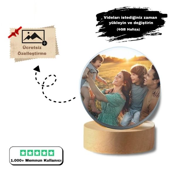 Dahili ekranı sayesinde en değerli videolarınızı kristal netliğinde oynatır ve anılarınızı gözlerinizin önünde yeniden canlandırır. Sadece bir küre değil; görülebilen, duyulabilen ve hissedilebilen bir hatıra.