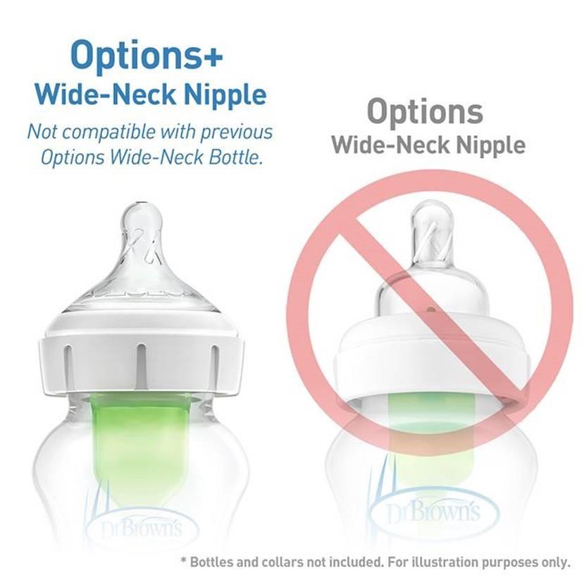 Wide Neck Bottle Nipples are only compatible with Options+ Wide Neck bottles.