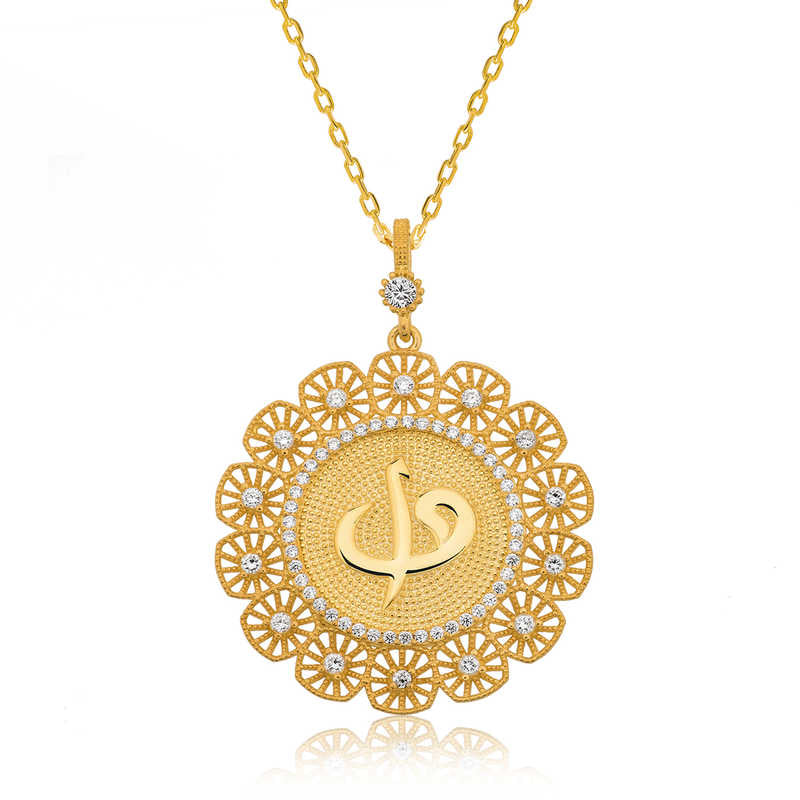 Gümüş Altın Kaplama Elif Vav Bayan Kolye