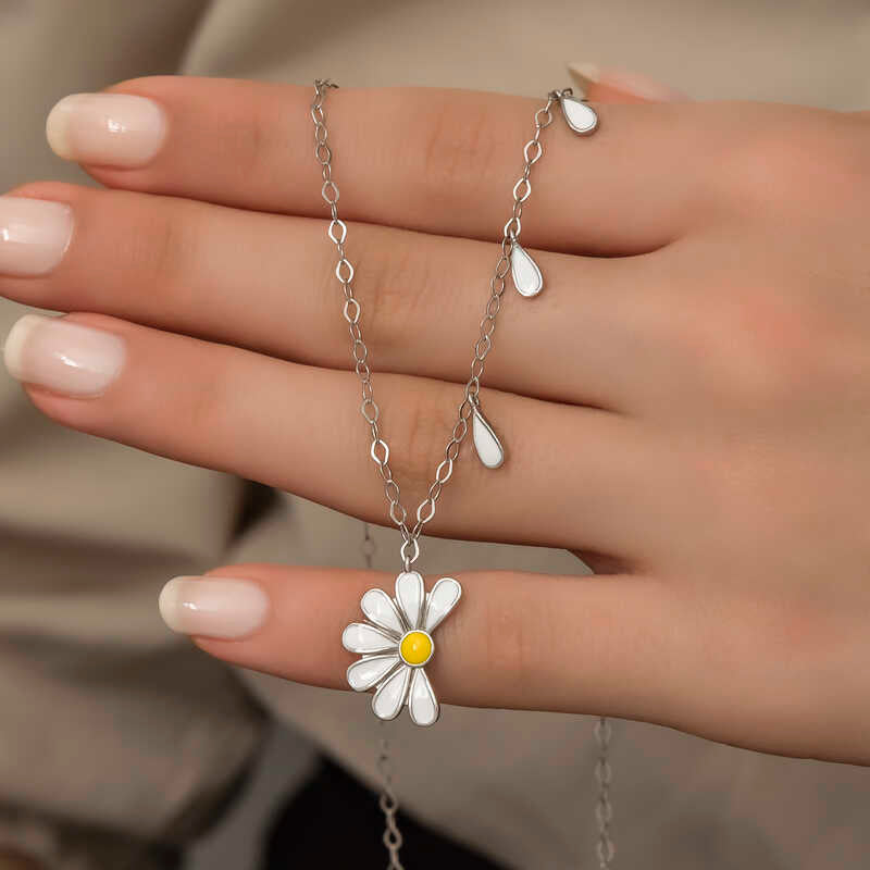 Gümüş Rodyum Papatya Seviyor Sevmiyor Bayan Kolye